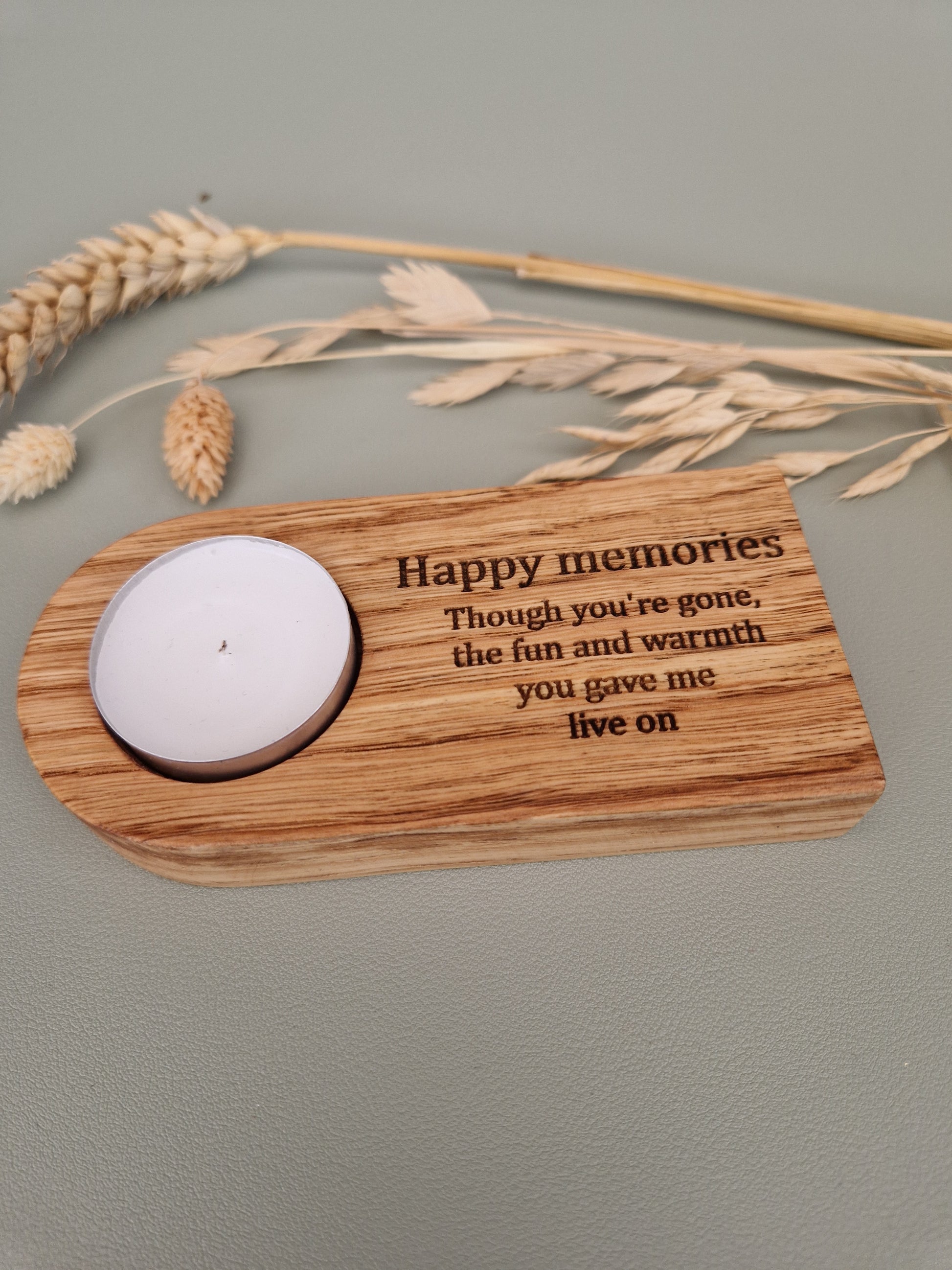 Handcrafted from solid oak and custom engraved with your pet’s name or message, this elegant tealight holder is a heartfelt way to honour their paw prints on your heart. 💜